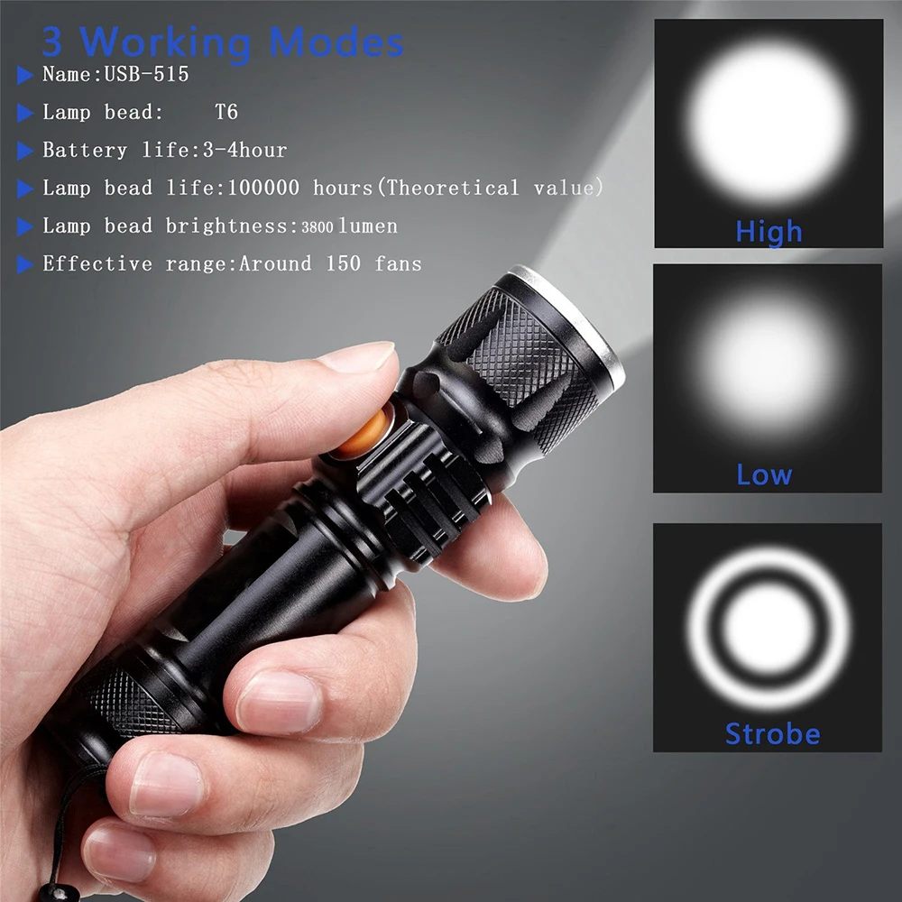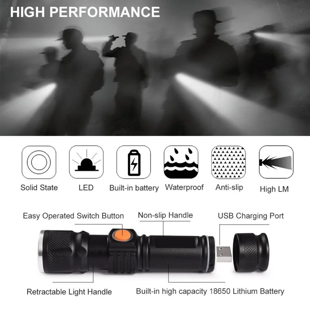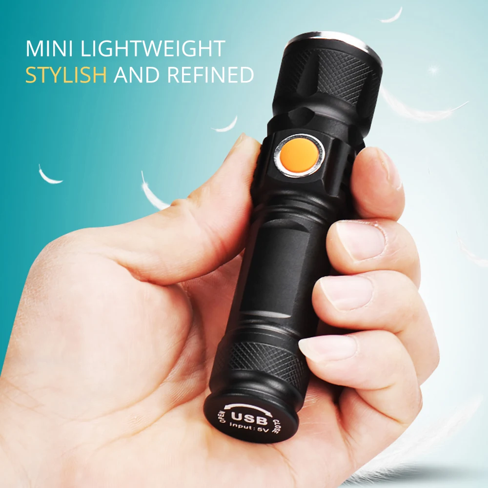 astounding USB Rechargeable LED Flashlight Glare Built-in 18650 Lithium Battery Torch Waterproof Zoom Portable